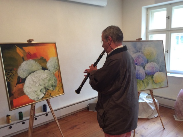 Eine neue und nette Idee war der Auftritt des Musikers mit der Klarinette, der die Kunstwerke mit seinem Instrument auf unterschiedlichste Weise interpretierte.