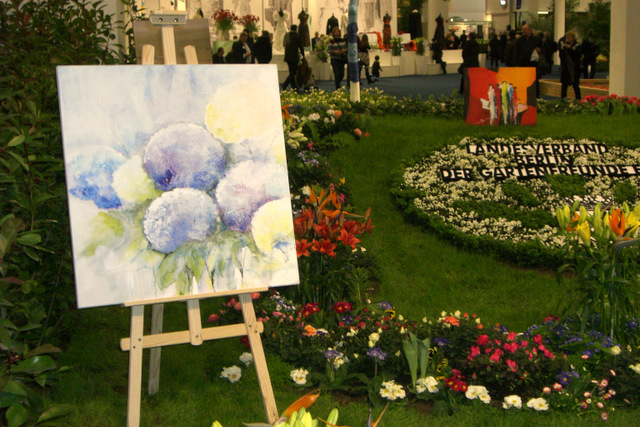 Der Landesverband der Gartenfreunde Berlin e.V. präsentierte sich auch in diesem Jahr wieder auf der Grünen Woche, um die Besucher über das Kleingartenwesen zu informieren. Dazu konnten Künstler aus den Kolonien ihre unterschiedlichen Kunstwerke zeigen. Ergänzend wurde veranschaulicht, wie sich die Kleingärtner in ihrer Freizeit auch künstlerisch betätigen.