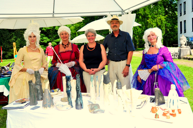 Am 12. Mai 2013 fand auf Schloss Blankensee zum zweiten Mal das Event “Kunst auf Schloss Blankensee” statt. Sechzehn Künstler aus Berlin und Brandenburg präsentierten ihre Kunstwerke im Schloss und Schlossgarten. Obwohl es am Nachmittag kühl und regnerisch wurde fanden sich dennoch viele Besucher ein, die sich an den dargebotenen Kunstwerken erfreuten. Im Schloss waren neben der Malerei und professioneller Fotografie auch kunstvolle Spiegel und handgefertigte Schmuckstücke zu bestaunen. Im schönen Ambiente des Schlossgartens stellten Holzbildhauer und Kunstschmiede ihre Werke aus, die von drei herausragenden Keramikkünstlerinnen ergänzt wurden. Wie schon im letzten Jahr schmückten flanierende Damen und Herren in historischen Kostümen das Kunstereignis und erfreuten die Besucher mit ihrem Auftritt ebenso wie der Saxophonist, der die Gäste mit seinen sanften Melodien verzauberte. Da es nachmittags kühl blieb herrschte im Schlosscafé großer Andrang, wo es unter anderem wieder den begehrten Blankenseer Stachelbeerkuchen mit Kaffee zu verkosten gab. Für die Literaturfreunde fand um 16.00 Uhr eine Lesung statt, die dem Dichter Joachim Ringelnatz zu seinem diesjährigen 130. Geburtstag gewidmet war.